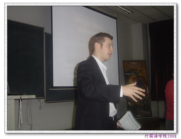 作为第三届外语文化节的系列活动,本次关于美国留学讲座取得了圆满成功。长达两个小时的讲座,同学们都进一步了解了美国大学、感受到了美国文化,收获颇丰。