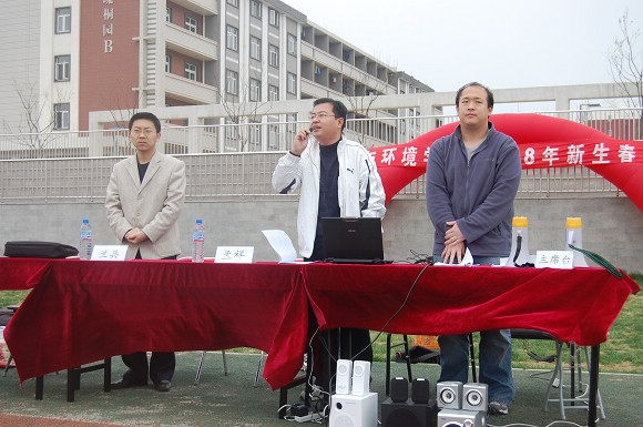 2008年4月12日上午,化工与环境学院2008年新生春季运动会在良乡校区成功举行。学院党委副书记、副院长孟祥老师,学院团委副书记、2005级辅导员兰兵老师出席了本次运动会。经过一个上午的比赛,大家在轻松愉悦的气氛下赛出了精神,赛出了风采,赛出了团友谊,整个运动会呈现一片和谐。