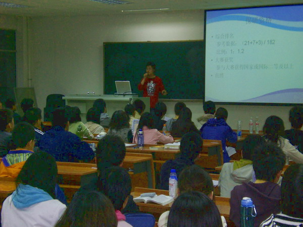 陈建伟学长(保送清华大学软件学院)的演讲中谈到了许多关于保送研究生的信息和保研期间的技巧——尽量给导师一个很好的印象分、同时在面试时不要不懂装懂等。而张冠元学长(考到中国科学院计算技术研究所)以他自己的经历为同学们讲述了在考取中国科学院的研究生时在面试和笔试时应注意的几个方面的信息(面试、笔试的基础知识很难,对英语口语的要求不是很高等)。
