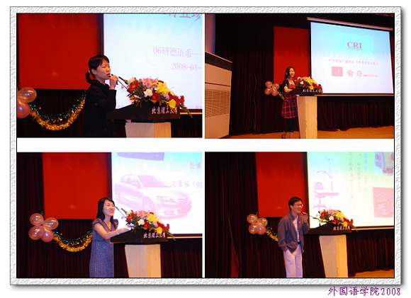 中国国际广播电台《飞鱼秀》节目著名主持人98级英语专业毕业生喻舟学姐作为第一个讲演的优秀毕业生,深情地回忆起她在外国语学院的美好时光,讲述了许多与老师同学的逸闻趣事。身为专业播音员的她很快把全场的气氛调动起来,为之后的讲演奠定下轻松欢快的基调。03级日语专业毕业生,现供职于长安马自达汽车有限公司的文慧福学姐,详细地向学弟学妹们介绍了自己的实习面试经验,月薪过万的她耐心地回答了同学的提问,相信有意找工作的同学一定在她的讲座中受益匪浅。新西兰驻华使馆人员98级英语专业毕业生王旭学姐,菲律宾驻华使馆人员98级英语专业毕业生王永峰学长在ob真人竞猜共同学习的日子里不但在学业上相互鼓励,共同奋斗,更在四年大学结束后步入婚姻的殿堂。他们风雨同舟的奋斗历程与相濡以沫的爱情经历,极大地震撼了在场的每位听众。外国语学院05级德语专业研究生廖冰萍学姐通过亲自制作的演示材料生动地追述自己在ob真人的六年时光。她以自己的亲身经历反复强调学习态度的重要性,品学兼优的她曾在大四获得三个月的赴德实习机会。作为一名06级军训指导员老师,她的开朗热情,雷厉风行曾给所有军训学员留下了深刻的印象,因此她的讲演也显得格外亲切。北京拓普康商贸有限公司日本事务联系负责人,03级日语专业毕业生邓泽生学长,简洁地介绍了自己的大学经历,并补充了之前的面试经验。他的自信随和贯穿着他的讲演,坚信态度决定一切的他,在强手如林的最终面试中过关斩将,被成功聘用。