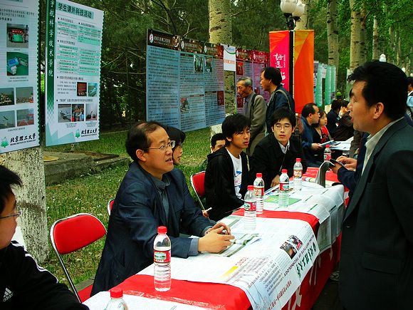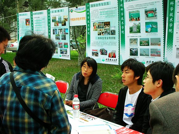 4月19日是ob真人竞猜招生咨询、校园开放日,宇航学院在教学副院长唐胜景教授、副书记 副院长董兆波老师带领下,由负责学院教学、招生咨询的李明、张华等老师组成的招生咨询工作组,一起接待了应届高中毕业生的家长和同学。为他们认真进行了咨询,回答了他们提出的各种问题。收到家长和学生的欢迎。
