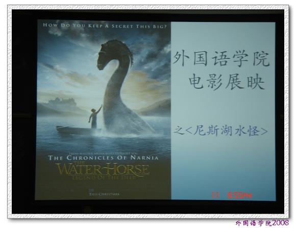 为了增强良乡校区大学生的外语学习氛围,并且在通过观看电影了解外国文化,外国语学院2007级在4月每周安排了2部不同语种,不同背景,不同时期的原文电影进行展映。在近期展映的电影包括了近期上映的国际大片,经典的电影等。本月分别展映了《尼斯湖水怪》、《刺杀据点》(英语)、《在世界中心呼唤爱》(日语)、《空中火灾》(德语)四部电影。这些电影讲述了不同的主题,有感人至深的爱情,有现实中的英雄人物歌颂,有人与动物的奇幻历程……..电影播放期间,情节跌宕起伏扣动着同学们的心情,同时,原文电影的播放也极大的提高了同学们的英语听力,使同学们在娱乐中学习。