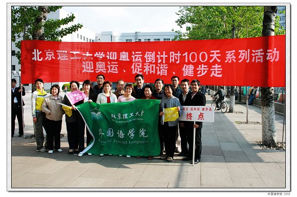 在这阳光明媚、春意盎然季节,2008北京奥运悄然临近。ob真人竞猜外国语学院积极参加迎奥运倒计时100天系列活动——4月22日的广播体操表演、4月23日的健步走活动。