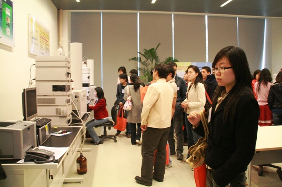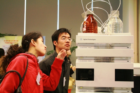 同学们饶有兴趣的参观了安捷伦公司的产品展区,了解了安捷伦公司的科技发展历程,今昔产品的对比,让同学们深感科技发展的迅速,以及安捷伦公司在分析测试等领域为世界科学研究做出的贡献。同学们还参观了安捷伦公司的开放实验室,观看正在使用中的最新的技术设备,其中有不少设备都自己在科研使用过或正在使用的,大家纷纷与工作人员交流使用心得,感觉受益匪浅。