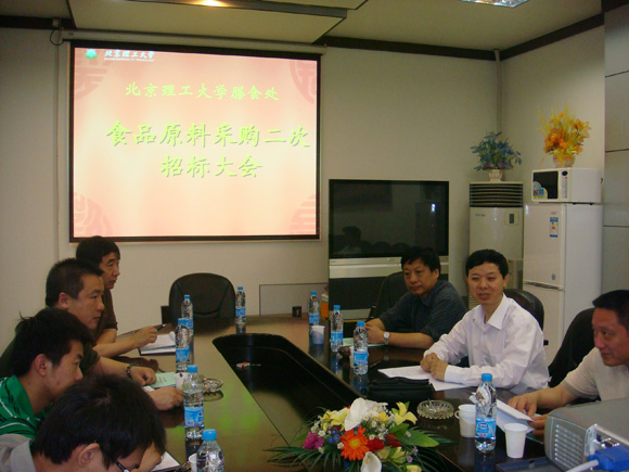 2008年5月24日,膳食处在会议室对大宗食品原料采购进行了二次招标。所谓二次招标,即在一年一度北京高校食品原料联合采购招标大会的基础上,对高校联合采购中心确认的合格供商及其产品通过竞争性谈判的方式招标评标。对大宗食品原料实行招标采购,其目的就是为了规范采购行为,杜绝暗箱操作,保证食品原料质量,提高资金使用效益,促进廉政建设。