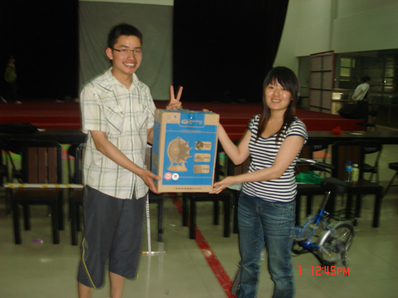 最后,精彩激烈的跑道赛开始了。跑道赛定为10圈,中间允许更换电池,但计时间。若速度太快冲出跑道,时间暂停,都由此带来的时间误差及车子损坏由参赛选手自负。比赛中,只见每辆四驱车在跑道中疾驰,不禁让人担心车子会飞出跑道。果然,当跑到最后几圈时,有的车子就一下冲出跑道,或者因速度太快造成马达受损和轮胎脱落。如此看来,还真有点F1的味道。但选手们毫不气馁,迅速作出调整来完成剩余比赛。