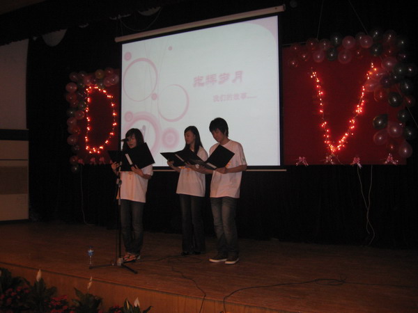 主持人简单介绍了协会的宗旨及创会初衷,然后由现任的三位协会主席代表协会历届主席做了深情的诗歌朗诵,详细述说了协会三年来的辛酸历程。平实的辞藻,真挚的感情,唤起了新老DV人的共鸣,也感动了在场的每一位观众。