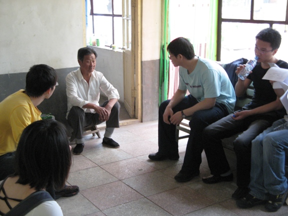 在“村官”周航同学的带领下,党支部成员首先参观齐家务村的新农村建设情况,党员们通过自身感受,深刻的理解了新农村建设的巨大成就和深远意义,党支部自费印制了有关奥运和抗震相关知识的简明手册,向村民们发放宣传,并做了有关奥运和抗震的问卷调查活动。