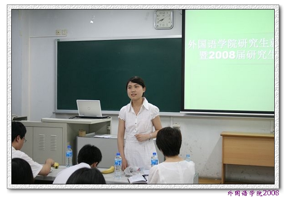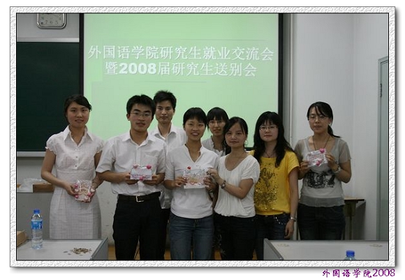 6月16日晚,外国语学院举办了外国语学院研究生就业经验交流会暨2008届研究生送别会。外国语学院07级全体研究生及06级部分研究生代表参加了此次活动。外国语学院党委副书记、副院长吴文君老师和外国语学院分团委副书记李刚老师出席交流会。