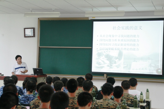 王征老师从自己几年来参与和指导社会实践工作的经验和体会出发,为同学们总结了做好社会实践工作的五大关键问题,即“题目、理论、手段、资料、总结”,通过对这五个关键要素的分析,为同学们做好一次完整的、有一定质量的社会实践,提供了全新的思路。王征老师首先对广大同学做了积极参与社会实践工作的动员,他指出,对待社会实践活动,不应停留在一般的认识层面,应该将其定位为对自己观察分析能力、判断归纳能力等的一次良好的思维训练过程,从就业面向社会的角度来看,具有良好的思维能力,是社会对大学生的现实需要,从这个角度出发,每名同学都有必要在校期间开展一次有质量的社会实践活动。