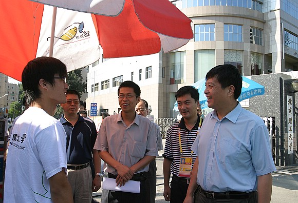 8月3日上午,校党委副书记、工会主席侯光明、学校办公室主任姚利民、ob真人竞猜处处长刘明奇、学校保卫处处长李汉军、保卫处副处长娄荣生和康明、校团委书记徐强、校团委副书记代方震以及校团委部分老师一行先后来到ob真人北门、小北门、东门、南门和西南门,首先慰问了在这里工作的城市志愿者和安保志愿者。之后又在工作现场召开协调会,就前一段工作进行了总结,并针对志愿者工作现存问题进行了协调解决。