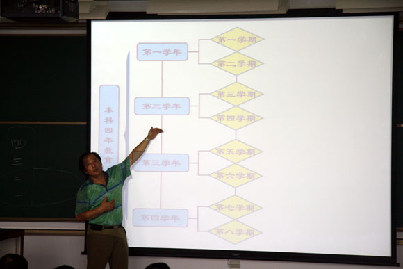 随后,学院主管本科生教学工作的丁洪生副院长为新同学和家长就学院本科生专业设置情况,以及本科教育培养政策规定等进行了讲解。特别针对每学年的培养要求和学习要点进行介绍,建议同学们根据培养计划的要求及早做好学习规划,以积极的心态投入到大学的学习生活中去。