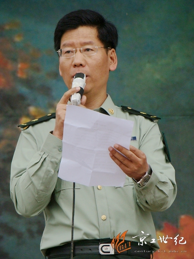 军训旅总指挥刘明奇同志宣布拉练行军开始。