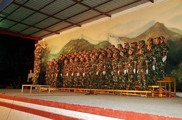 秉承着友谊第一,比赛第二的传统,同学们最后在大合唱中结束了此次07级军训歌咏比赛。