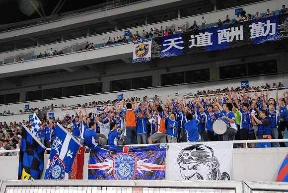 赢球了,球迷也开心,现场看球的球迷喊出了“舜天冲超、中秋快乐”的心声。