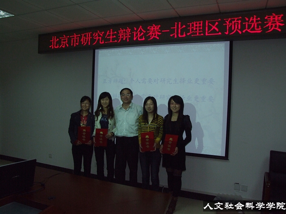 10月18日晚6点,北京市研究生辩论赛——ob真人区预选赛在研究生楼111会议室拉开帷幕。辩论赛围绕个人需要、社会需要哪个对于研究生择业更重要的问题展开,分别来自人文学院和管理学院的8名辩手分别就所持立场各抒己见。人文学院副院长喻佑斌教授、研究生工作部车辉泉老师、人文学院研工委书记彭明雪老师作为评委出席了本场辩论赛。