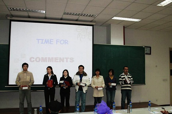 评委由外国语学院研究生英语教研室和博士生英语教研室的6名老师组成,并有一位美籍教师担任提问嘉宾。