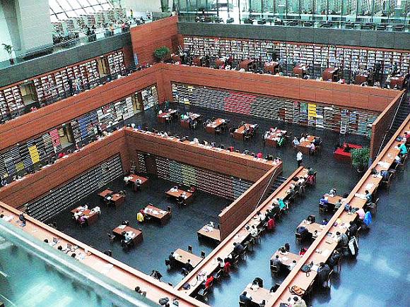 参观主体是来自2005级的23名德语专业本科生和2008级德语语言文学硕士生,他们目前正在进行毕业论文的开题工作。由于理工大学图书馆德文书籍的缺乏和专业资料的稀缺,使得他们在进行文献检索的时候很难搜集到有用的、对口的资料。这次新国图之行为他们在国内最大、最全面的资料库里自主查询、借阅资料提供了极大的帮助。从一层到五层,从新馆到旧馆,师生们对每一个分区都进行了参观。从中文资料到外文资料,从资料的阅览、外借再到归还,这些琐碎却非常实际的问题在图书馆现场工作人员的帮助下,都一一得到了解答。
