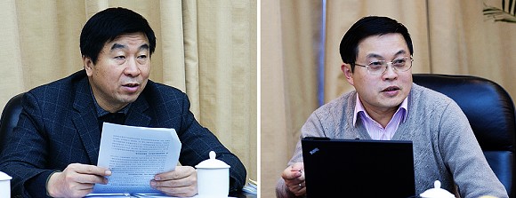 党委书记郭大成主持会议,校长胡海岩在会上发言。
