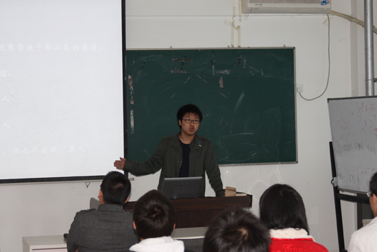 最后由计算机博弈与人工智能协会的崔浩主席就如何提高自己的领导能力,如何从前辈学长处得到有用经验向各社团工作骨干分享了自己的看法。学会用心去观察,用心去做事。