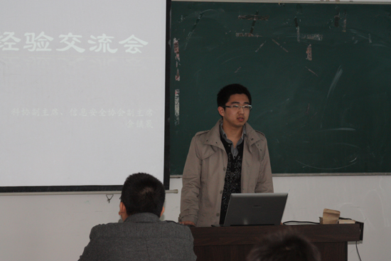 信息安全协会副主席金镇晟结合自己大学阶段成功与挫折的真实体会,介绍了自己的工作经验和感想,指出工作不分轻重,态度决定一切。