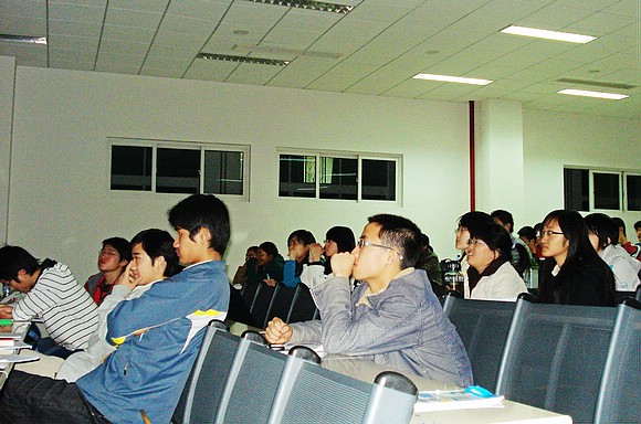 同学们认真聆听《财富人生•柳传志》