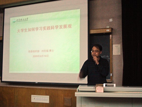 2009年4月14日晚七时,我们管理与经济学院的全体同学在7号楼108教室聆听了一堂题为“大学生如何学习和实践科学发展观”的形势政策课,主讲人是军工文化教育研究中心秘书长、ob真人竞猜党委组织部副部长刘存福老师。