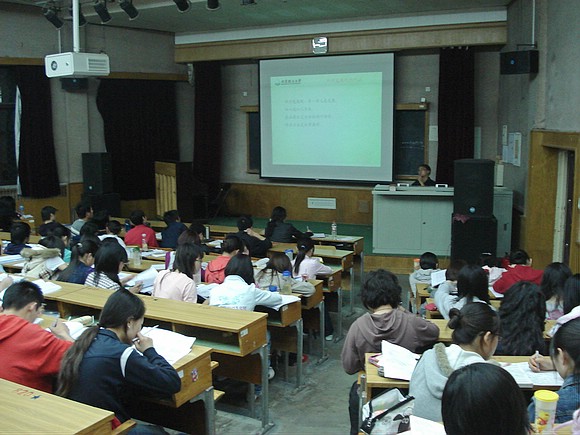 场下的同学都在认真的聆听,更有不少同学专注的做着笔记,对他们来说,这是一次不可多得的学习与提高的过程。讲座虽然只有短短的两个小时,但是给全体管院同学的收获却是终生的,正如刘老师所说——读万卷书不如行万里路,行万里路不如阅人无数,阅人无数不如高人点悟。