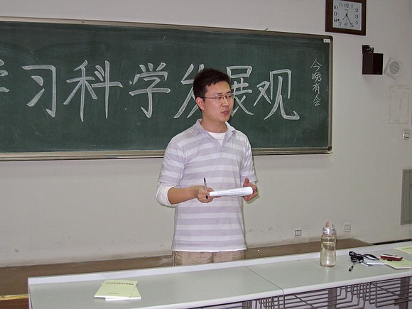随后,全体支部党员进行了集体学习。这次会议每位党员手中都拿到了一份学习科学发展观的学习大纲。在集体学习中,首先由支部的宣传委员带领大家进行了学习。