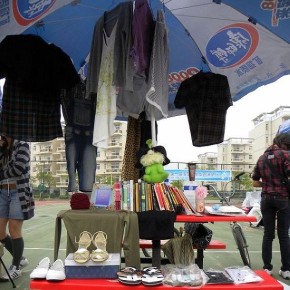 跳蚤市场内商品琳琅满目,主要是一些学习用具、DIY饰品、二手书籍、二手衣服等等。