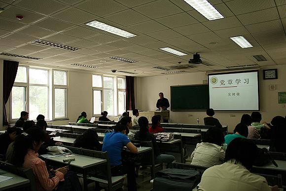 根据学校科学发展观学习的总体部署,为了充分发挥教师党员的先锋模范作用,我院于5月15日上午召集全体教职工党员由学院书记吴树敬教授给大家上党课。