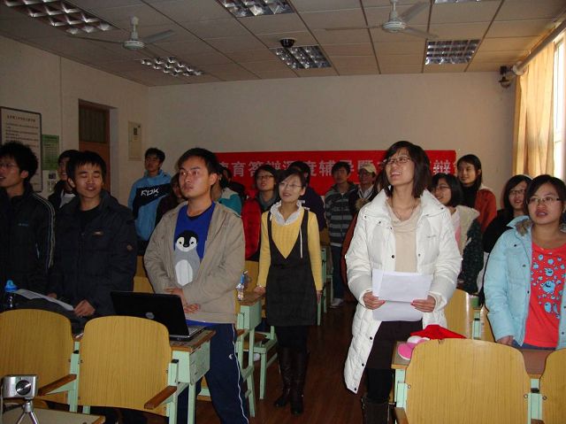 鲜花,条幅,茉莉清茶,DV,相机以及精心准备的PPT和视频, 08220701班为本次交流答辩会做了精心的策划和充足的准备。下午两点,PPT娓娓道来两年的微笑与泪水,歌声唱出《我的未来不是梦》,答辩交流会随之拉开序幕。