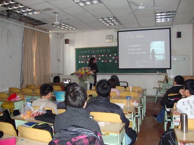 自计算机专业转入市场营销大家庭的美丽女生赵海宇第一个上台演讲,而此后答辩的同学均由前一位演讲完毕的同学现场在黑板上抽签决定,不设防的上场顺序体现了市场营销班的创意,也达到了良好的效果,让每个人在答辩的四个小时里都全神贯注。答辩进行中间穿插了全班同学互送礼物的环节,从班费中支取的每个人两元的预算带出了无数的惊喜与创意。虽只是两块钱,在市场营销班的德育答辩交流会上却化成了最厚的祝福,最暖的心意。