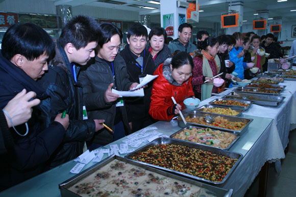 2010年1月7日晚上七点半,一场形与味的角逐在教工食堂闪亮登场。后勤集团总经理李晋平、常务副总经理巫后新,后勤集团党委副书记、工会主席姜金凤参加此次活动。餐饮中心、接待中心、幼教中心组成的十个代表队38位厨师参加激烈角逐,几十位助阵团成员参观比赛。9位具有丰富经验的烹饪高手担任评委,比赛由接待中心延园餐厅经理李宪主持。
