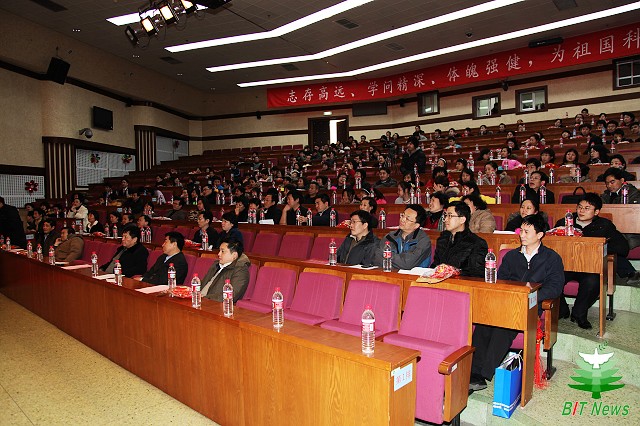 1月26日下午机关党委、机关工会联合会在中教一层报告厅举办新春团拜会,郭大成书记、胡海岩校长、侯光明副书记、赵平副校长、赵显利副校长出席了本次大会。在悠扬的音乐声中,萨仁、王民两位主持人拉开了本次团拜会的序幕。