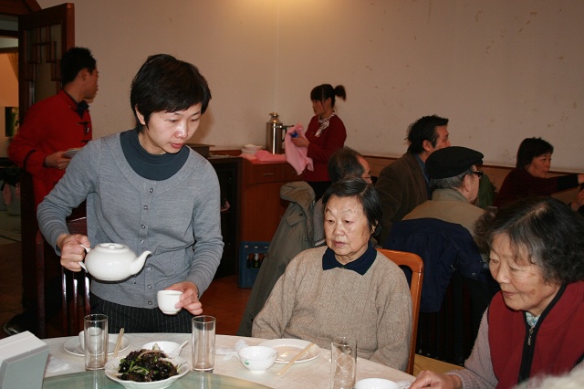 吴文君副书记为老教师敬茶,表达浓浓的关怀之情