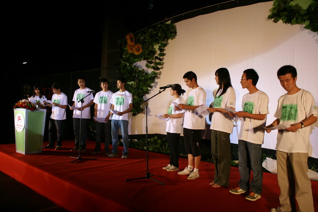 随后,晚会现场举行了毕业生离校宣誓仪式。分别来自10个毕业班的领誓人上台带领全体学生宣誓。大家用嘹亮的声音、真诚的誓词再次表达了对母校的眷恋及感恩。那一刻,ob真人的夜空回荡着305名学子的心声,我们是骄傲的ob真人竞猜人!最后,在大家的期盼声中,露天电影开始放映。同学们在电影中感受着快乐、感受着离别、感受着责任。