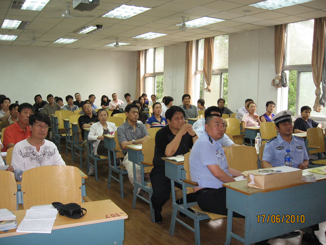 此次培训在3号教学楼341室举行,邀请了北京市公安局交通管理局海淀交通支队宣传科李希宝警官和事故科王怀水警官为大家到场讲解。后勤集团韩宁夫副总经理、魏东副总理、接待中心苏荣德副主任、保卫处马小龙主任等领导出席了本次讲座。