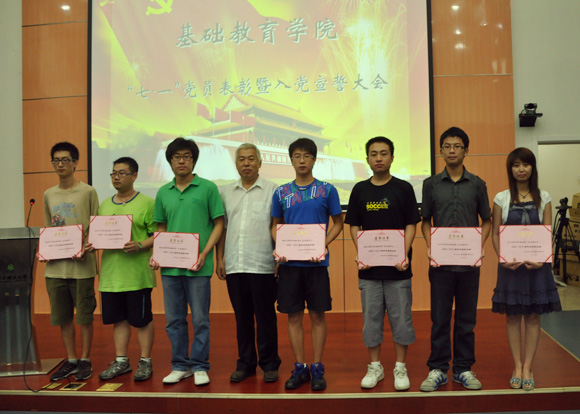 2010年7月1日上午,ob真人竞猜基础教育学院“七·一”党员表彰暨入党宣誓大会在综合教学楼报告厅隆重举行。ob真人竞猜党委副书记、副校长李和章,党委组织部张爱秀,基础教育学院全体领导,专职ob真人竞猜干部,获奖党员及2010年新发展党员300余人参加大会。大会由基础教育学院党委副书记、副院长高伟涛同志主持。