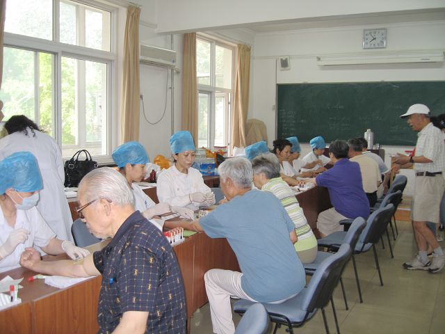 为做好此次筛查工作,校医院专门抽调一批经验丰富的医护人员,连续五天每天早上六点半开始便在远志楼为老同志进行抽血。他们在工作中表现出来的耐心细致、经验丰富、技术精湛,确保了筛查工作进行顺利,迅速高效。
