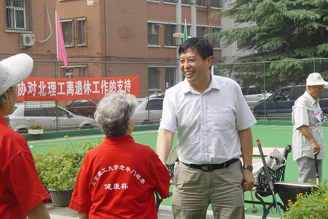 我校党委副书记、工会主席侯光明侯光明向关心、支持门球场建设的海淀区老年体协、门协以及学校领导、相关单位表示衷心的感谢,对离退休老同志为我校的建设和发展做出的贡献表示赞赏和感谢,在七十校庆之际,希望新的门球场成为一个服务于离退休教职工的重要活动场所,丰富老同志的精神文化生活,让老年人有自己的锻炼场所。同时,衷心祝愿所有的离退休老同志们身体健康,合家欢乐,携手共迎七十校庆,共创美好未来。