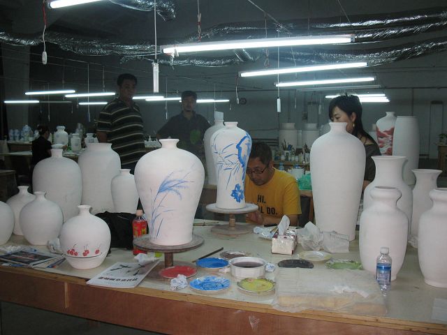 不用传统的宣纸,也放下一般的毛笔和墨汁,在光滑的瓷瓶弧面上写写画画,需要静气,需要把握用笔力度,需要对器型进行全方位整体设计。艺术家们在瓷器上挥洒诗情画意,着实是一件让人眼界顿开的事。