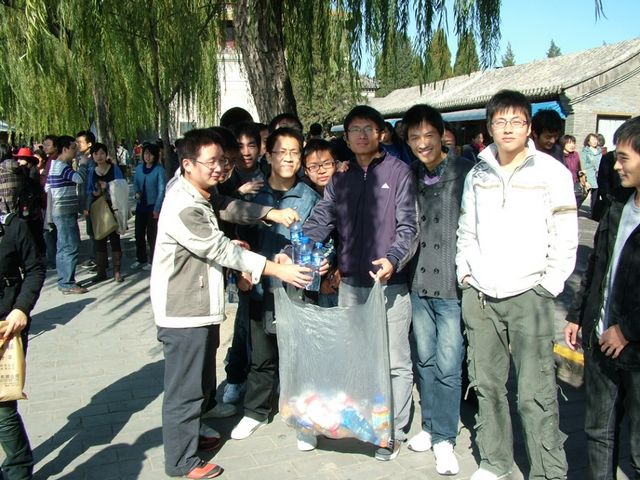 这一次的活动,我们紧紧围绕着“支持低碳,绿色环保”这一主题。为了使此次活动圆满进行,我们将参加此次活动的25人分成了5个小组,并各自确立了一个领头人,率领大家对在颐和园内任意丢弃的垃圾进行回收和清理,本次活动以小组为单位迅速开展开来,各组凭借各自的优势对颐和园内进行垃圾“地毯式搜索”,大家的积极性也被迅速调动起来。