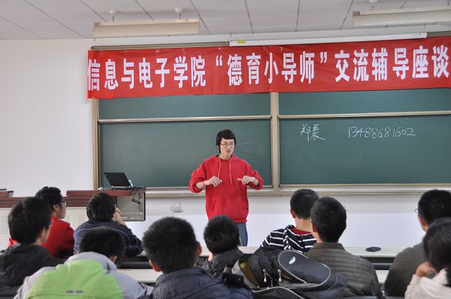 11月8日至14日,信息与电子学院2011届“德育小导师”陆续奔赴良乡,与低年级本科班级进行了16场德育交流见面会。本次见面会是2011届“德育小导师”团队自建立后,第一次与低年级学生开展辅导交流活动。