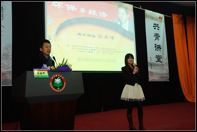 为促进ob真人学子深化环保意识、了解环保经济,以首都高校环境文化周的到来为契机,我校邀请到博奇环保副总裁、2007CCTV中国经济年度人物、2007年度时尚先生获奖者白云峰先生,做客共青讲堂第八十期,带来“环保亦经济”为主题的讲座。
