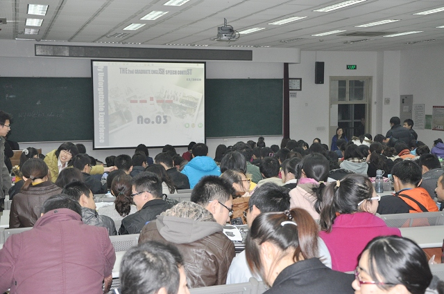 为丰富研究生的英语课外学习活动,提高应用英语的能力,研究生院和外国语学院联合主办第八届研究生英语演讲比赛预赛(2010年11月17日晚在研究生楼201),经过班级初赛,每班选出1位代表,另有1位免修生经过个人申请,共有35位选手争夺决赛权,下列15位同学将于11月24日晚7点在研究生楼201决赛,届时将有外教即席提问,欢迎观临!