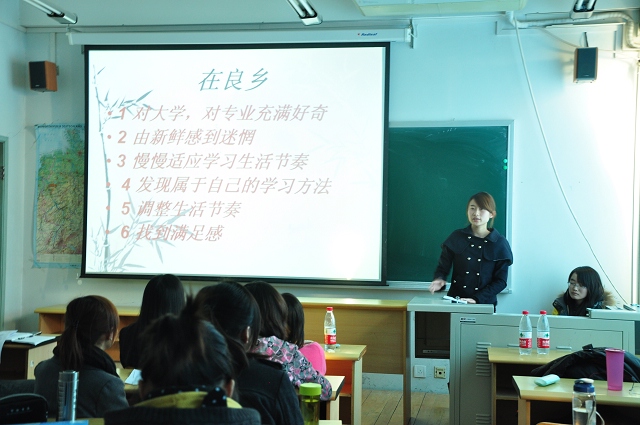 报告会伊始,班干部向同学们播放了精心制作的视频,让大家一起回顾了过去两年班级的集体生活,随后同学们以宿舍为单位,依次上台向同学们讲述了自己前两年的学习和生活经验,介绍了自己从步入大学到今日已在象牙塔中度过两年的岁月后思想的转变,预设目标的完成情况,并且根据自我情况对未来的学习和工作制定出了大致的方向。