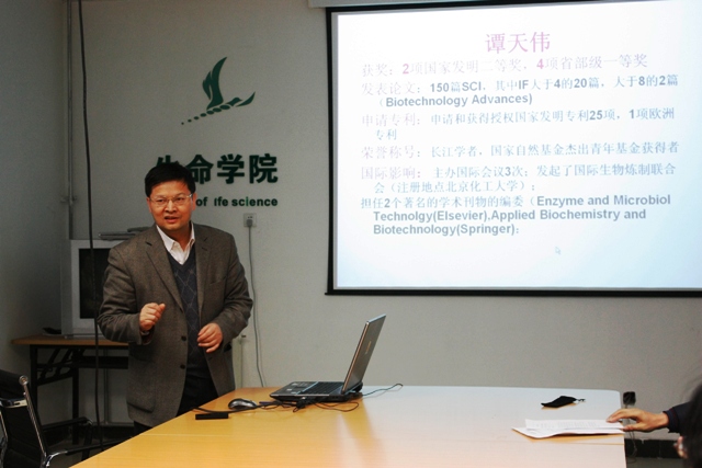 12月13日,应生命学院邀请,北京化工大学副校长、长江学者、国家杰出青年基金获得者谭天伟教授来我院作报告。生命学院院长邓玉林教授,生物工程系教师张建丽、郭淑元、李艳菊、周晓红、戴大章、赵东旭和刘燕老师参加了本次报告会,我院部分博士生、硕士生代表也积极参与。报告会由校理科与材料学部副主任、生命学院生物工程系主任李春教授主持。