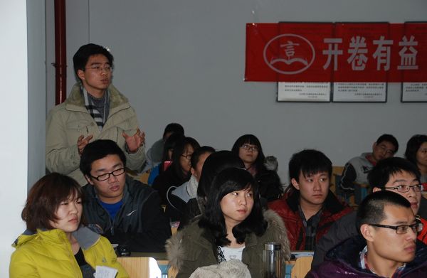 2010年12月11日,人文学院第一期“读书益言堂”活动在中教322教室隆重拉开帷幕。来自人文学院的学生干部和热爱读书的50余名同学参加了此次活动。此次活动是人文社会科学学院依托学院的师资力量开展的,以“开卷有益、为学立言”为主题,自2010年12月起将按月定期举办,旨在营造阅读经典的读书氛围,促进业余时间的学习交流,提高全体学生的人文素养。