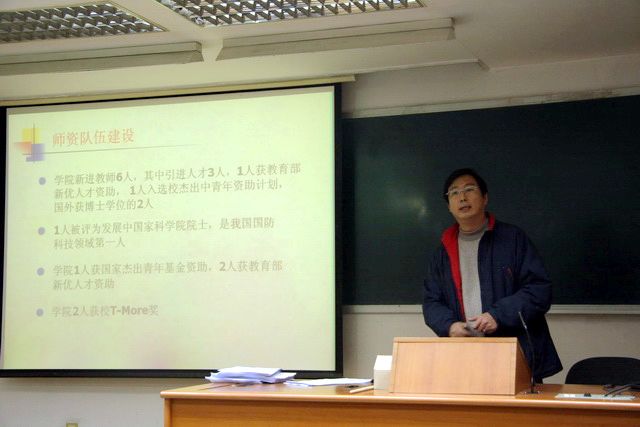 首先,全院教职工在中心教学楼211教室听取了学院领导的2010年述职报告,校长胡海岩院士出席会议。胡更开院长代表学院做2010年工作总结,详细介绍了一年来学院在各个方面取得的成绩、存在的不足以及新一年的发展目标。学院党委书记于倩及其他院领导均做了个人述职述廉报告。通过院领导的工作总结汇报,全院教职工对学院在过去的一年里所确定的成绩感到满意,并对学院和学院领导做出了中肯的评价。光电学院党委书记韩宝玲教授及部分兄弟学院的代表参加了测评。